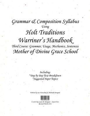 Grammar & Composition Syllabus (Warriner's 3rd Course)