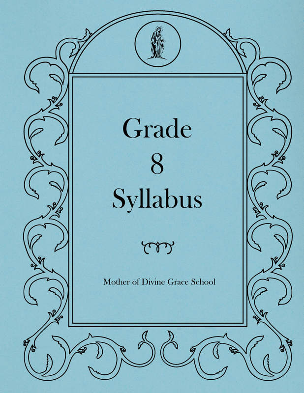 The Eighth Grade Syllabus contains detailed daily lesson plans for Religion, Mathematics, Grammar, Spelling, Poetry, Science, History, Geography, Latin, Art and Music. It also contains a variety of teaching resources including Eighth Grade Subject Rubrics and Learning Objectives, suggested daily schedules, teaching tips, grading charts, a list of grade level appropriate literature correlated to the history, and a tests for Religion and Geography. We have provided below a sample of the first week from the syllabus along with a list of the books used in the syllabus.